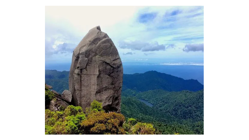 太忠岳1日コースおよそ400年前に一度伐採され長い年月をかけ再生された、 ヤクスギランドの森をぬけ、太忠岳の頂上にある40mの花崗岩の塔!天柱石へ・・・ 天柱石は遠くから観ると拝んでいる手のようにも見え。 その形からか、『拝み石』とも言われ、文字どおりこの山は山岳信仰の対象とされてきました。 先人が神々の宿る山として歩き続けた道を歩み、 その頂きを目指しましょう! 頂上からの景色は屋久島の東側の海と安房集落が一望! |